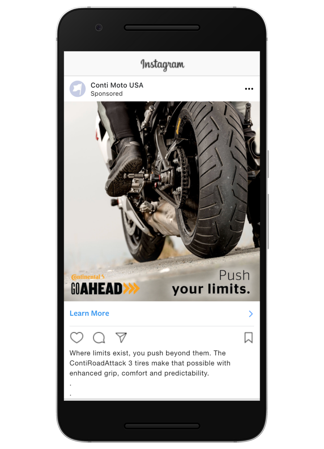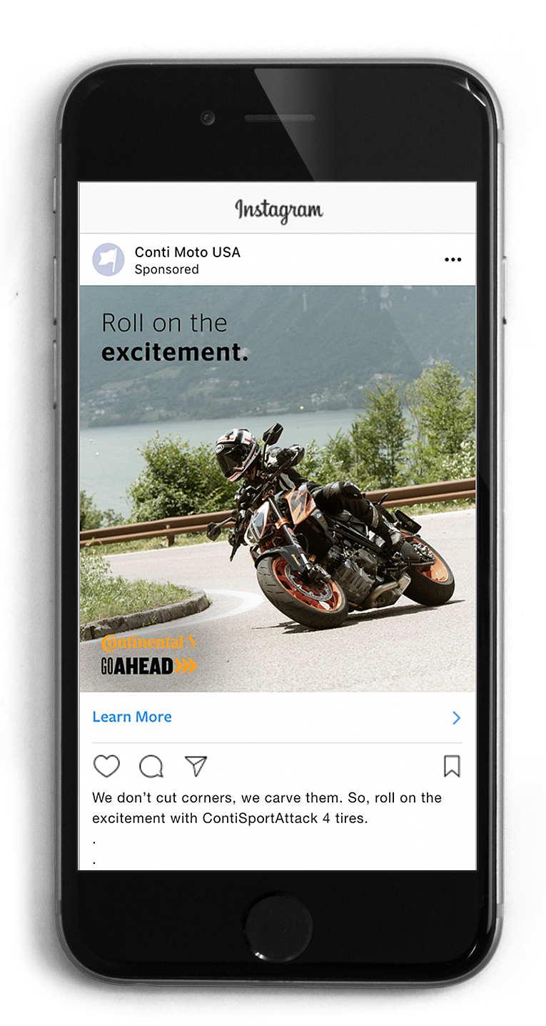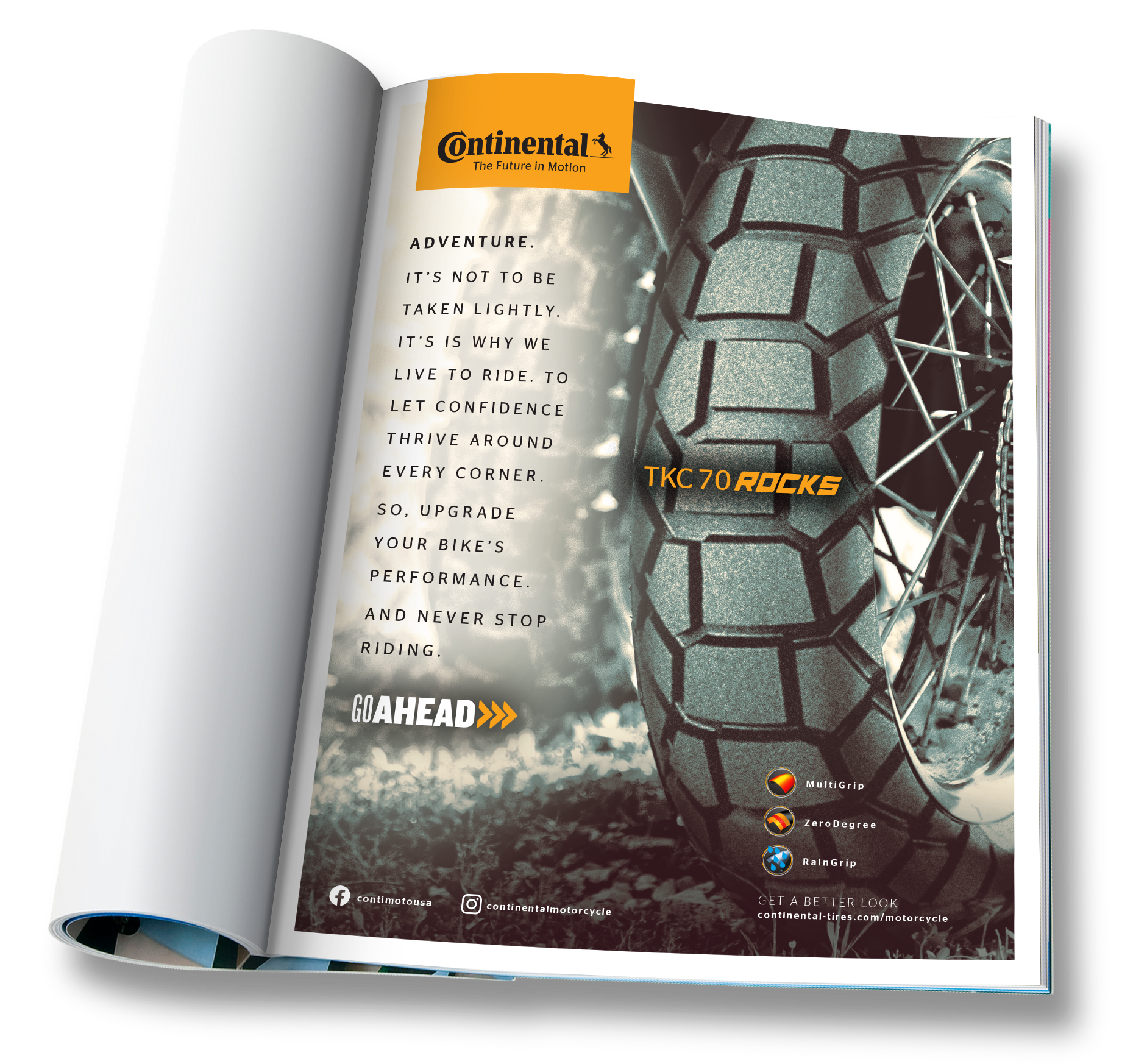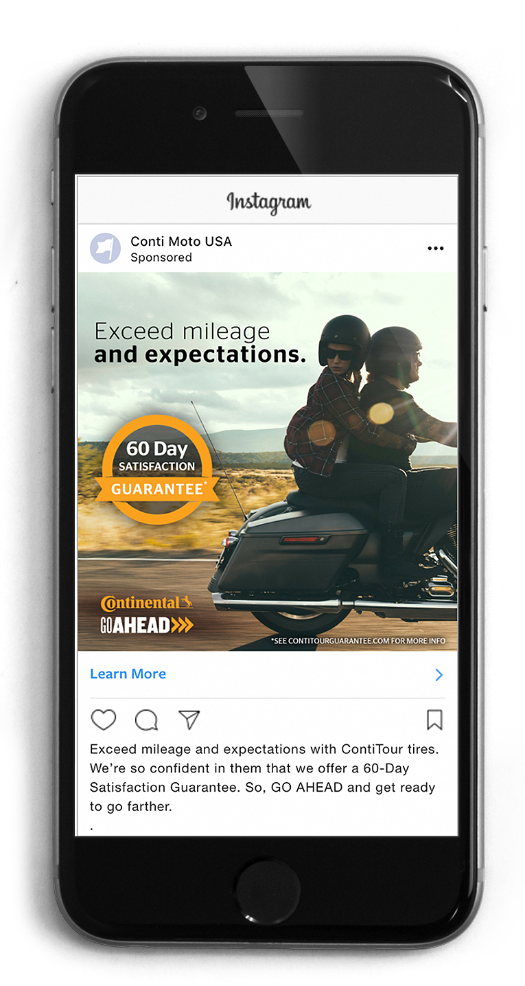 Below is a series of print ads, social ads and a landing page I wrote to compliment Continental’s “Go Ahead” campaign for its motorcycle tire line.